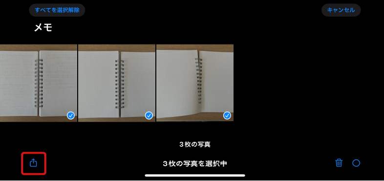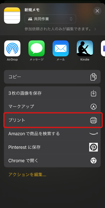 - 「共有」ボタンを押す(するとPDFが作成されます)