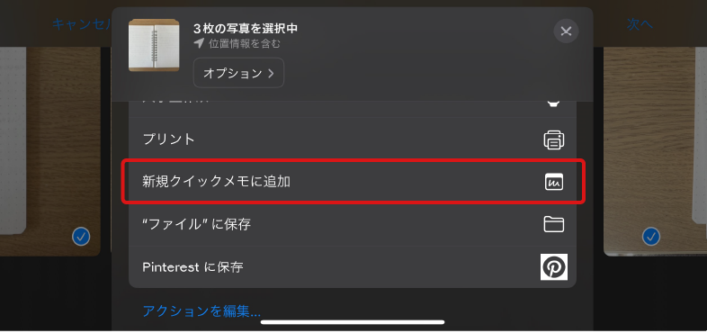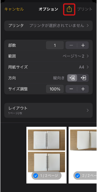 - 「共有」ボタンを押す(するとPDFが作成されます)