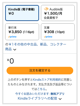 『注文を確定する』ボタンを押すと、Kindleアプリから読むことが出来ます。